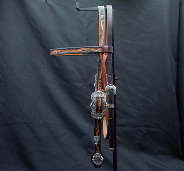 Black and Brown Floral Carved Browband Headstall.