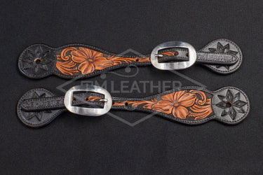 Black & Natural Small Floral Spur Straps w/ Plain Buckles
