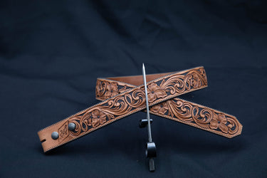 Light Brown and Black Western Wallflower Floral Carved Belt. Sizes 28-42. Style #330.