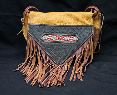Buckskin Leather Purse w/ Geometric Stamping & Beaded Accent