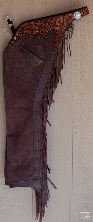 Cocoa Roughout Chaps w/ Brown & Light Brown Two Toned Floral Yokes