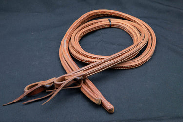 8' Double Stitched Weighted Split Reins. Harness leather. Sizes 1/2" and 5/8".