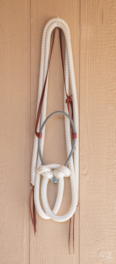 Loping hackamore blue noseband with 8' white split reins.