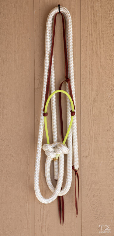 Loping hackamore neon yellow noseband with 8' white split reins.