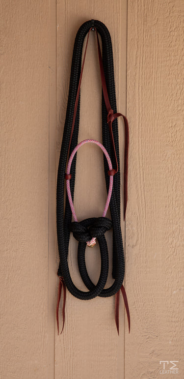Loping hackamore Fuchsia noseband with 7' black split reins.