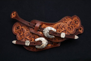 Mahogany and Light Brown Large Floral Spur Straps.
