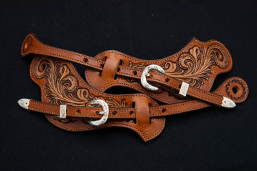 Saddle Tan and Light Brown Medium Floral Spur Straps.