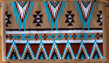 This pad features a Sand base with a combination of Turquoise, Rust, Chocolate with White Accents.