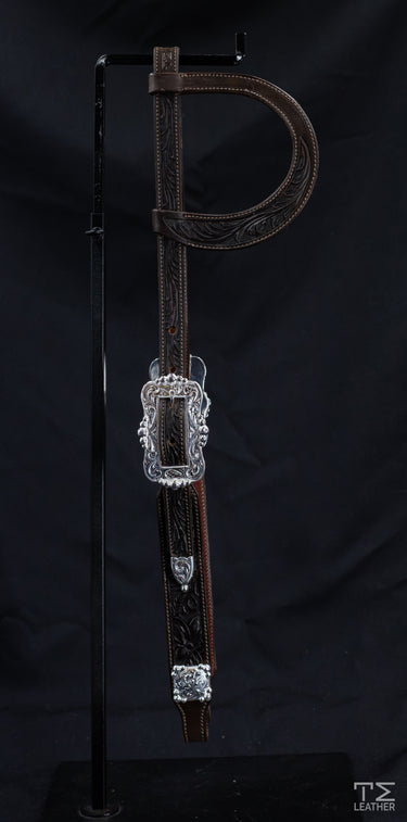 Slide Ear Chocolate Floral w/ Engraved Silver Plated Hardware & Matching Conchos