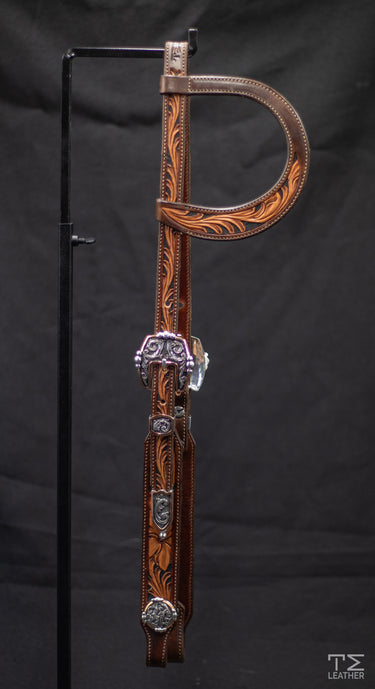 Chocolate and Light Brown Two Toned Floral Carved with Black Accents Slide Ear Headstall.