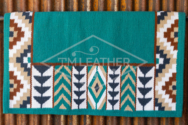 This pad features a Teal base with a combination of navy, chocolate, sand and white within the pattern.