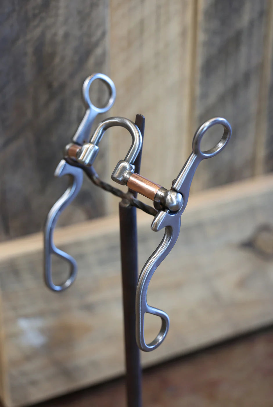 Crafted from high quality steel, this bit is designed to naturally patina and rust over time when exposed to humidity, saliva, or water. The rusting process is intentional, as it encourages salivation and relaxation in the horse’s mouth and is the traditional way of bit making.