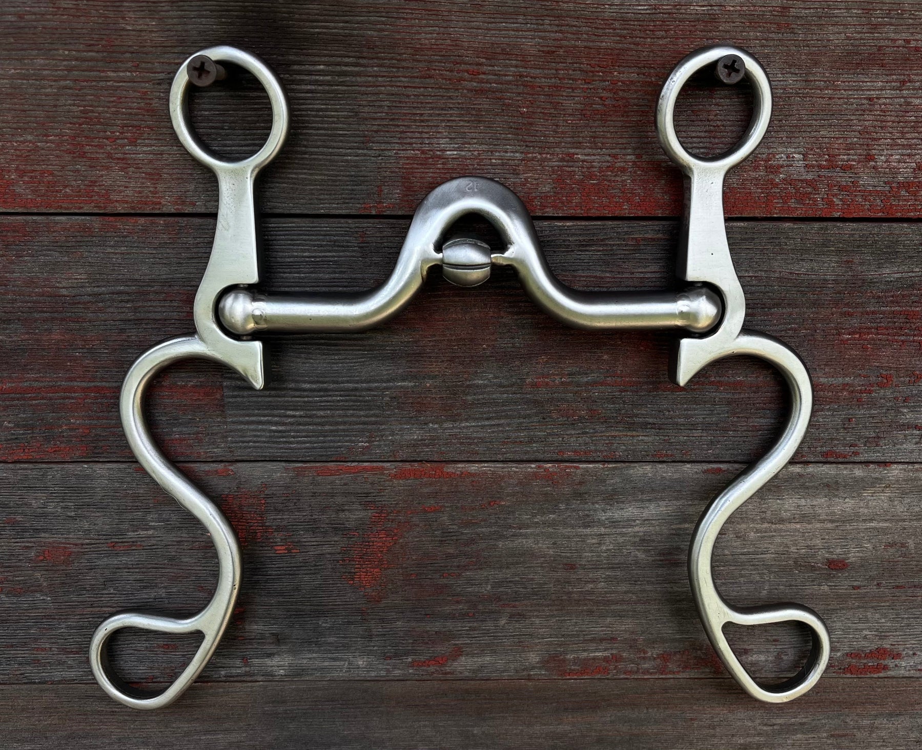 This shank is designed to naturally patina and rust over time when exposed to humidity, saliva, or water. The rusting process is intentional, as it encourages salivation and relaxation in the horse’s mouth and is the traditional way of bit making.
