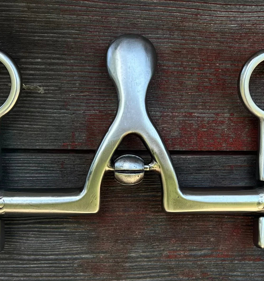 This shank is designed to naturally patina and rust over time when exposed to humidity, saliva, or water. The rusting process is intentional, as it encourages salivation and relaxation in the horse’s mouth and is the traditional way of bit making.
