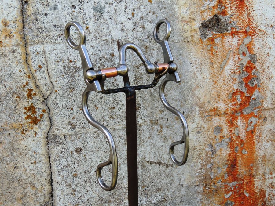 This shank is designed to naturally patina and rust over time when exposed to humidity, saliva, or water. The rusting process is intentional, as it encourages salivation and relaxation in the horse’s mouth and is the traditional way of bit making.
