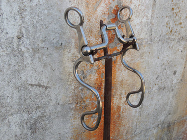 This shank is designed to naturally patina and rust over time when exposed to humidity, saliva, or water. The rusting process is intentional, as it encourages salivation and relaxation in the horse’s mouth and is the traditional way of bit making.