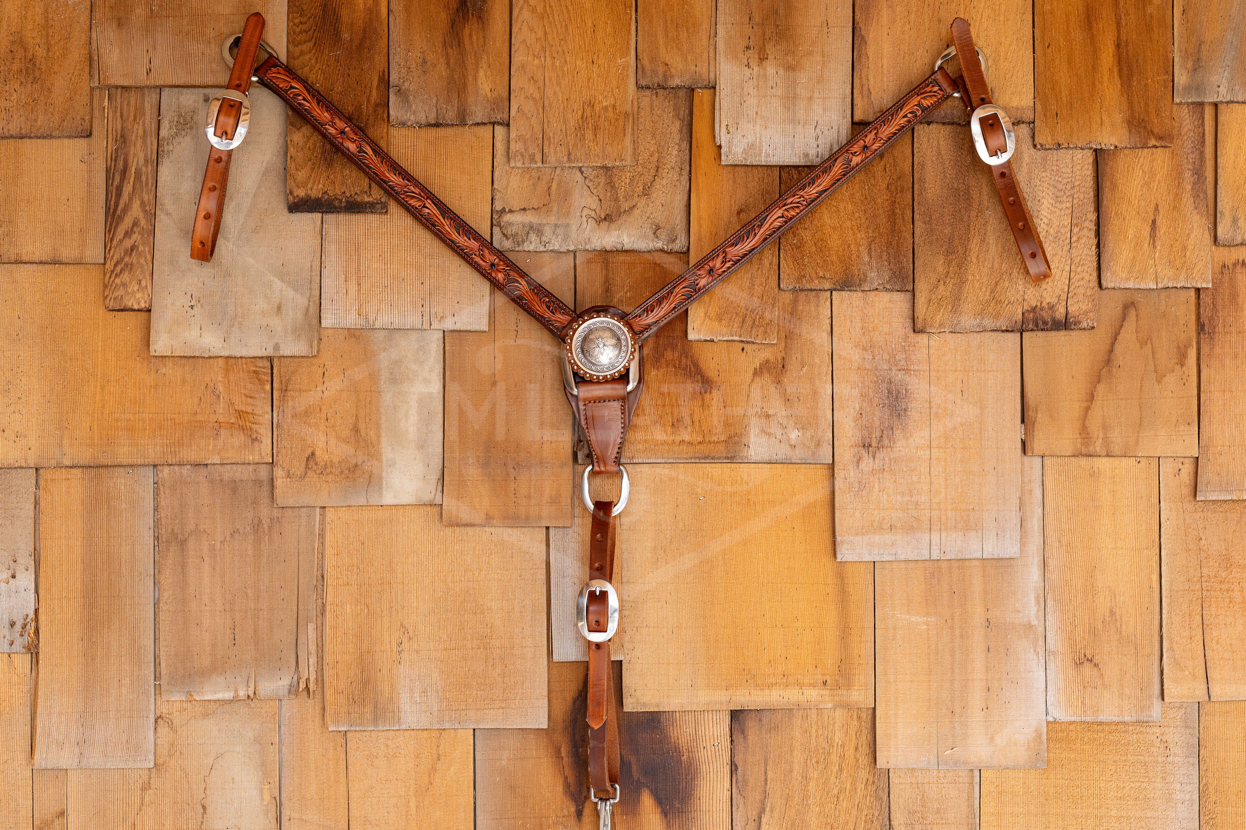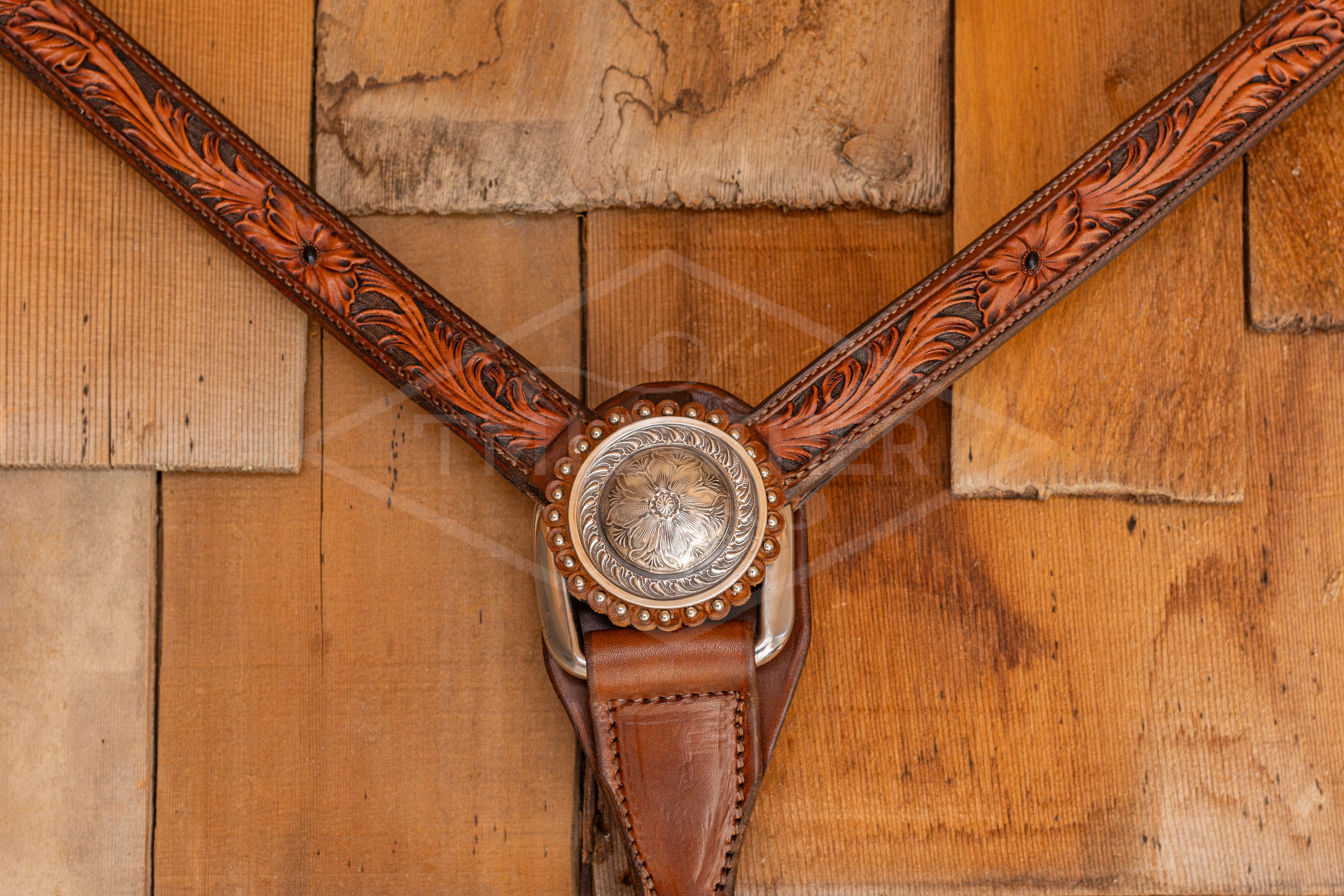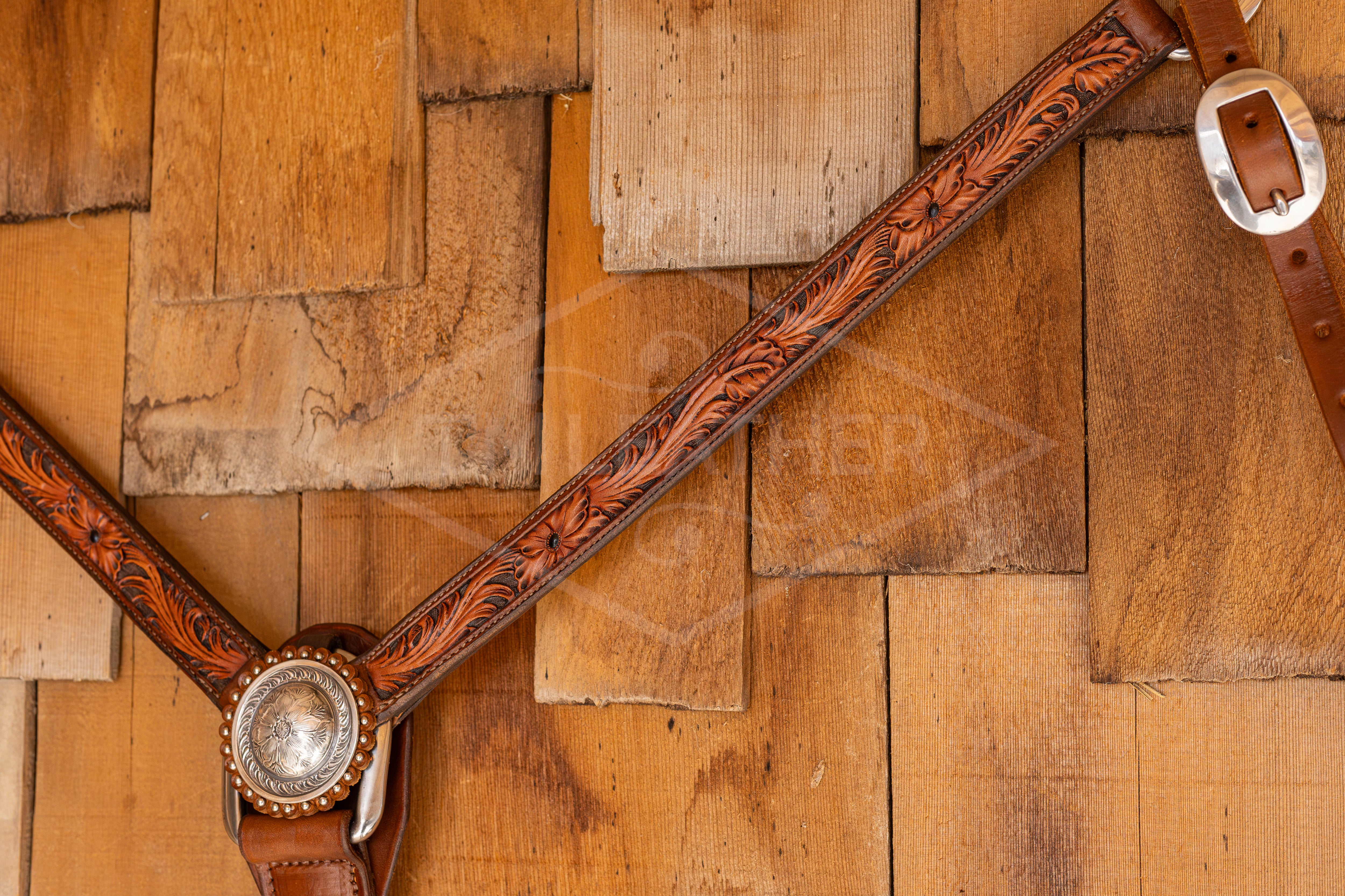 1” Breast Collar Walnut, Chocolate, and Natural Tri-Toned Floral Carved