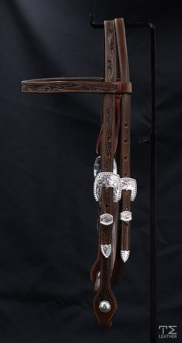 Chocolate Floral Carved Browband Headstall