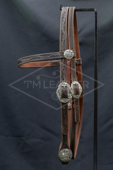 Features Silver Oval Shaped Buckle with Silver Scroll Overlay and Matching Conchos