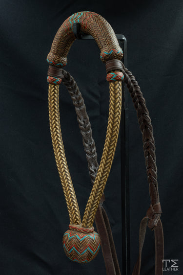 Barti Frunz Braiding 16 Plait 5/8" Natural Bosal with Brown Noseband and Red and Teal Accents