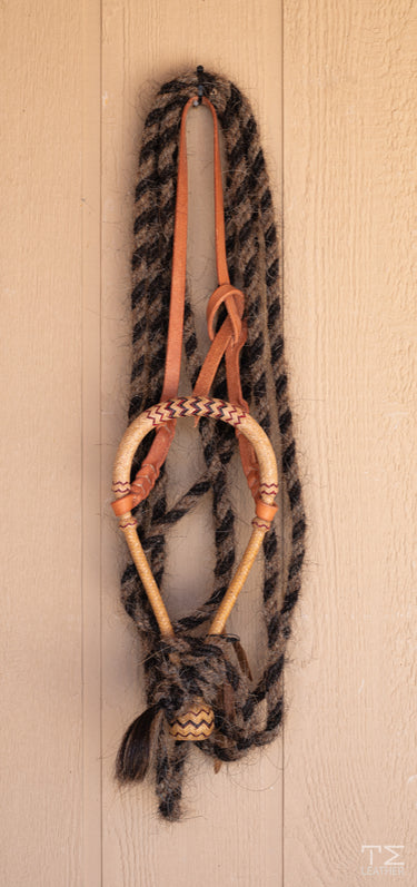 Includes: Custom TM Leather Hanger and 5/8" Black and Tan Horsehair Mecate