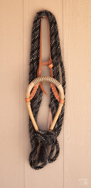 Includes: Custom TM Leather Hanger and 5/8" Black and White Horsehair Mecate with Grey Accents