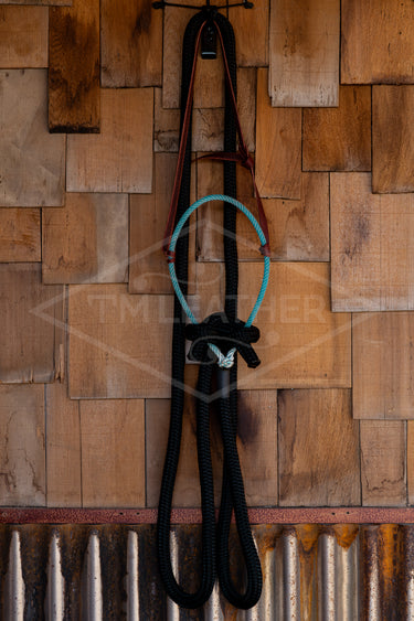 Loping Hackamore Light Blue Noseband with 8' Black Single Rein.
