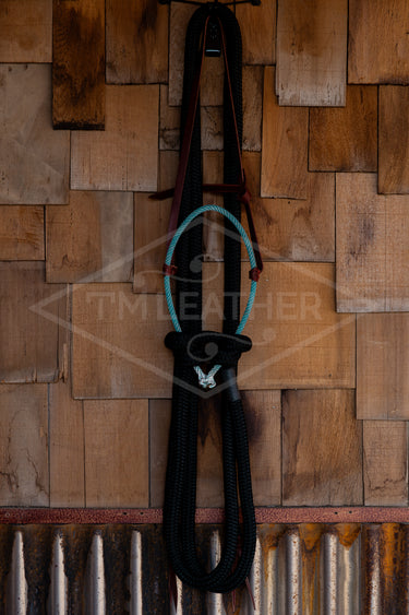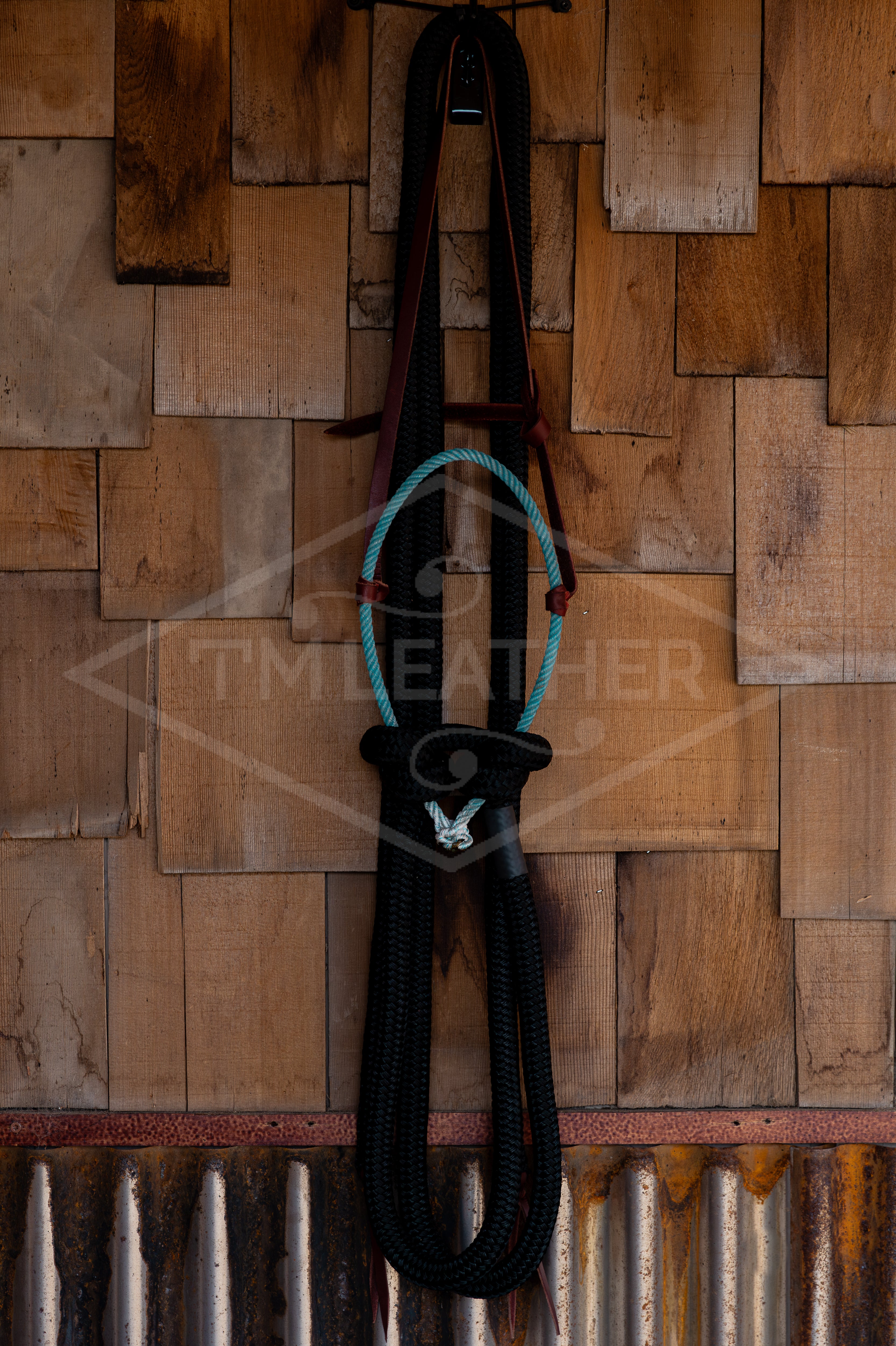 Loping Hackamore Light Blue Noseband with 8' Black Split Rein.