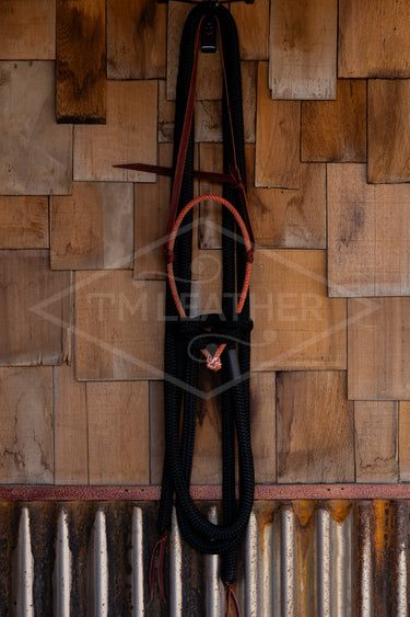 Loping Hackamore Orange Noseband With 8' Black Split Reins.