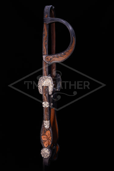 Black, Walnut, and Natural Tri-Toned Floral Carved Slide Ear Headstall