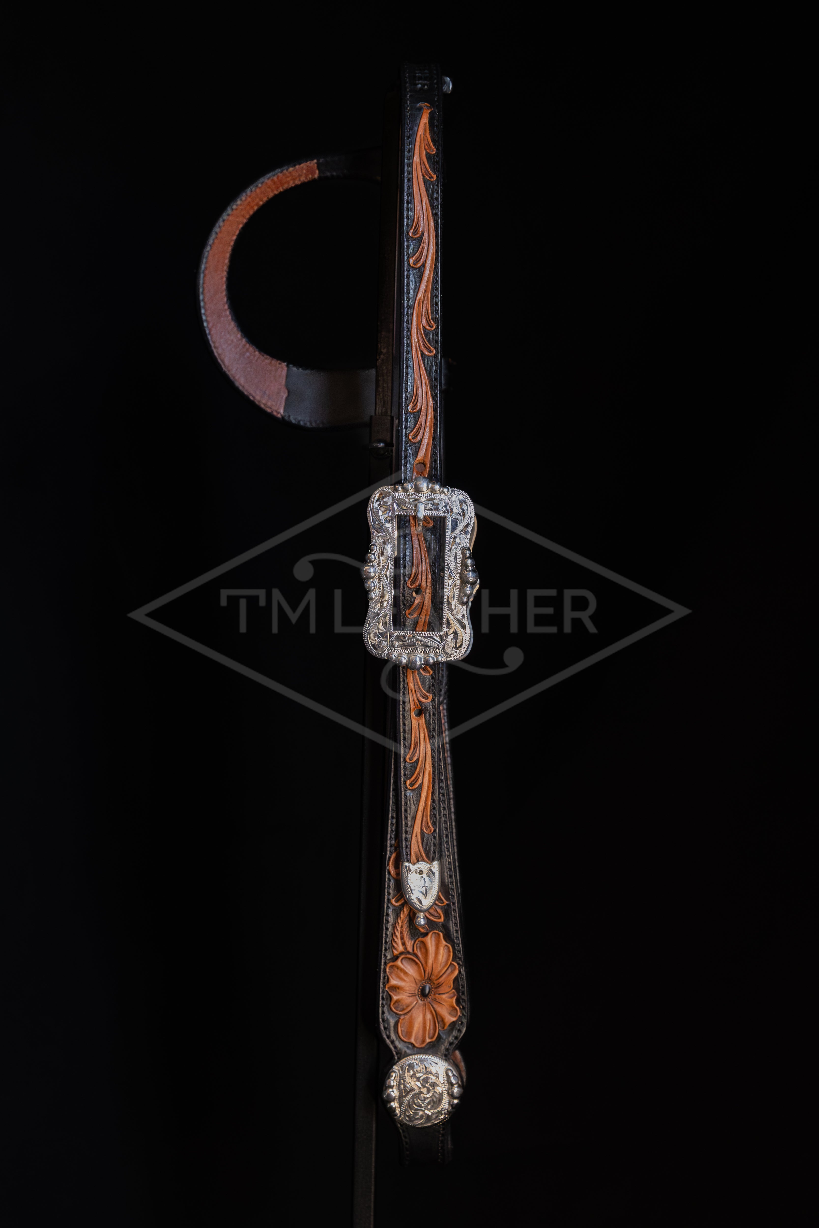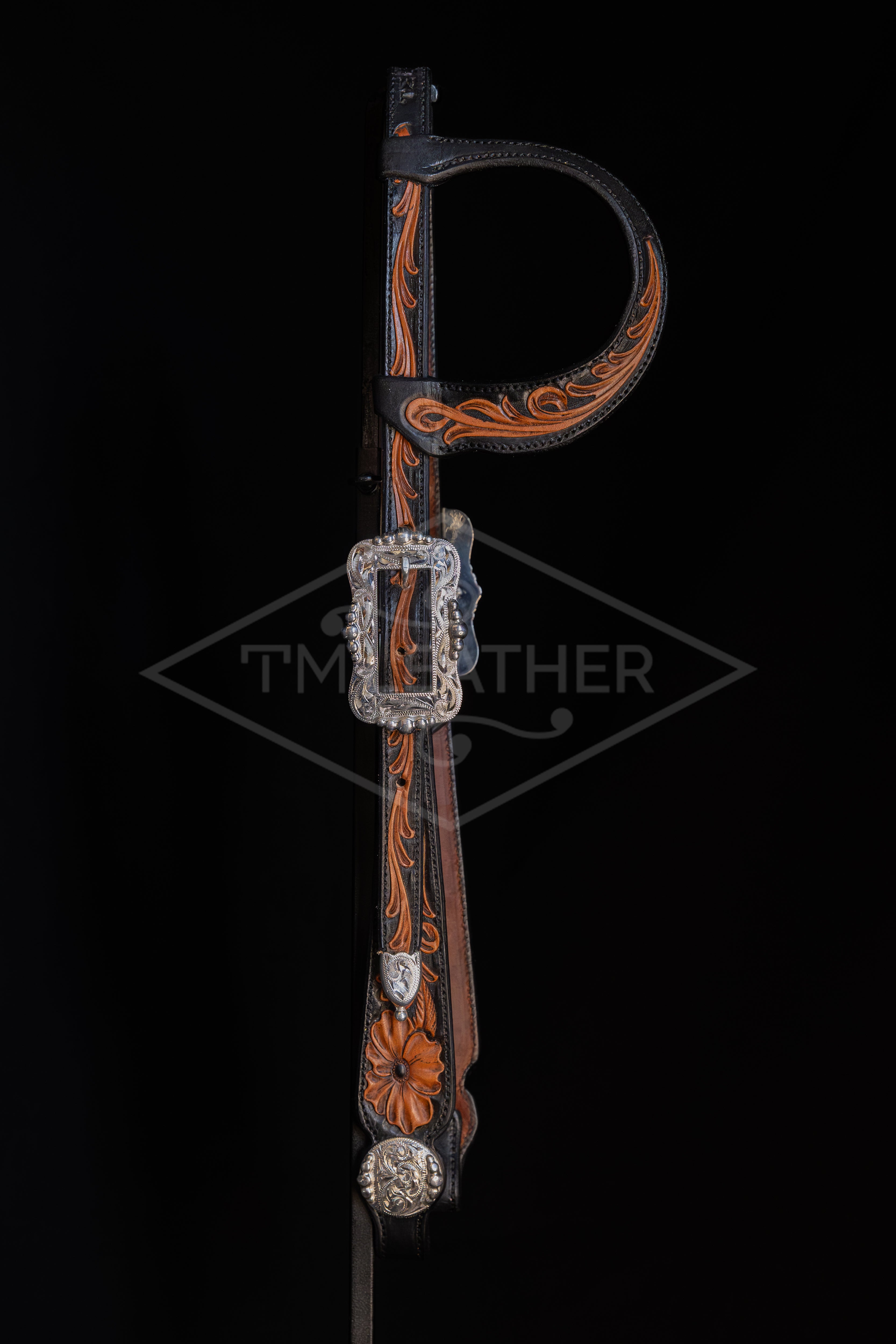 Black and Natural Two-Toned Floral Carved Slide Ear Headstall