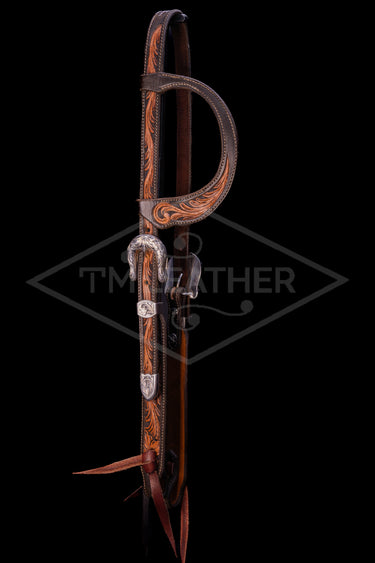 Chocolate and Natural Two-Toned Floral Carved Slide Ear Headstall