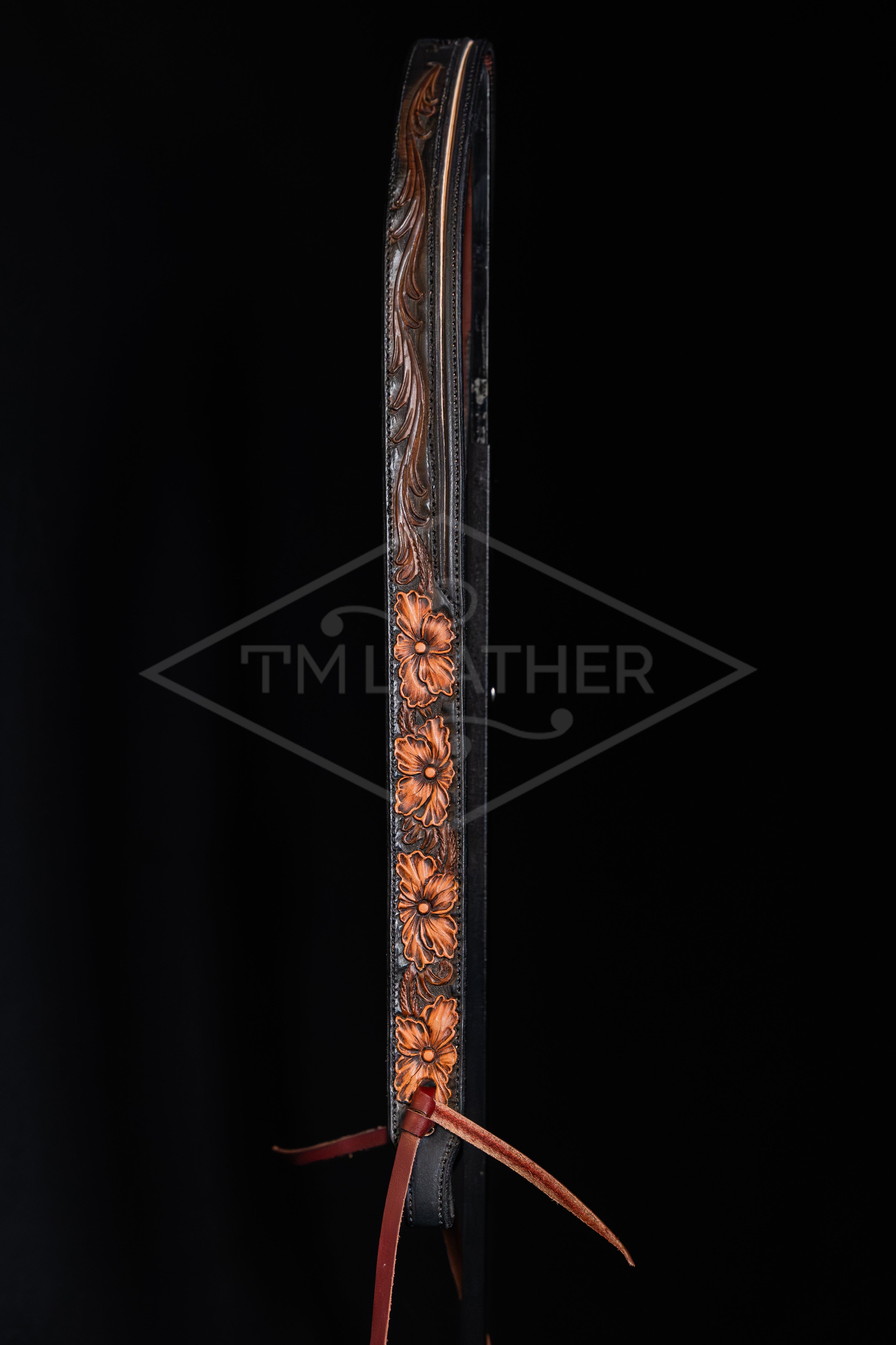 Black with Natural Flowers and Walnut Vines Tri-Toned Floral Carved