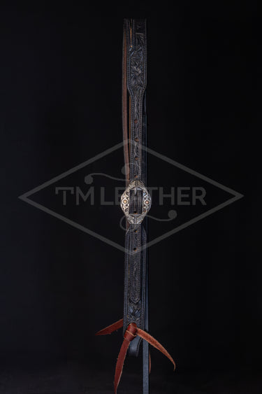 Features Silver Diamond Shaped Buckle with Floral and Copper Overlay