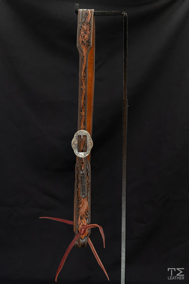 Features Silver Oval Shaped Buckle with Silver Scrolled Overlay