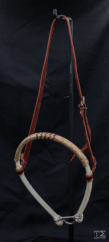 Double Nylon Tie-Down with Braided Rawhide Noseband with Maroon Accents