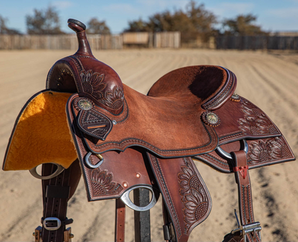 13.5" TM Chestnut Team Roper Sunflower Floral Tooled - USED