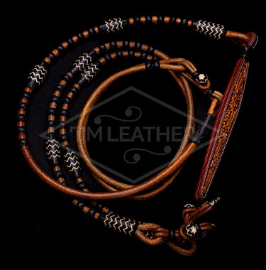 102" 30 Plait Chestnut Body and Black Buttons with Natural Accents George Moore Style Romel Reins