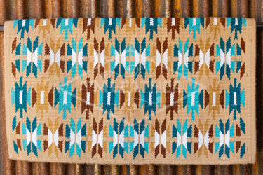 This pad features a Tan base with Chocolate, Sand, Blue, and Teal with White Accents.
