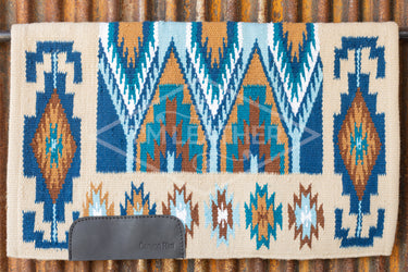 Cream, Dark & Light Blues Brown, Tan w/ White Accents Flat Show Blanket