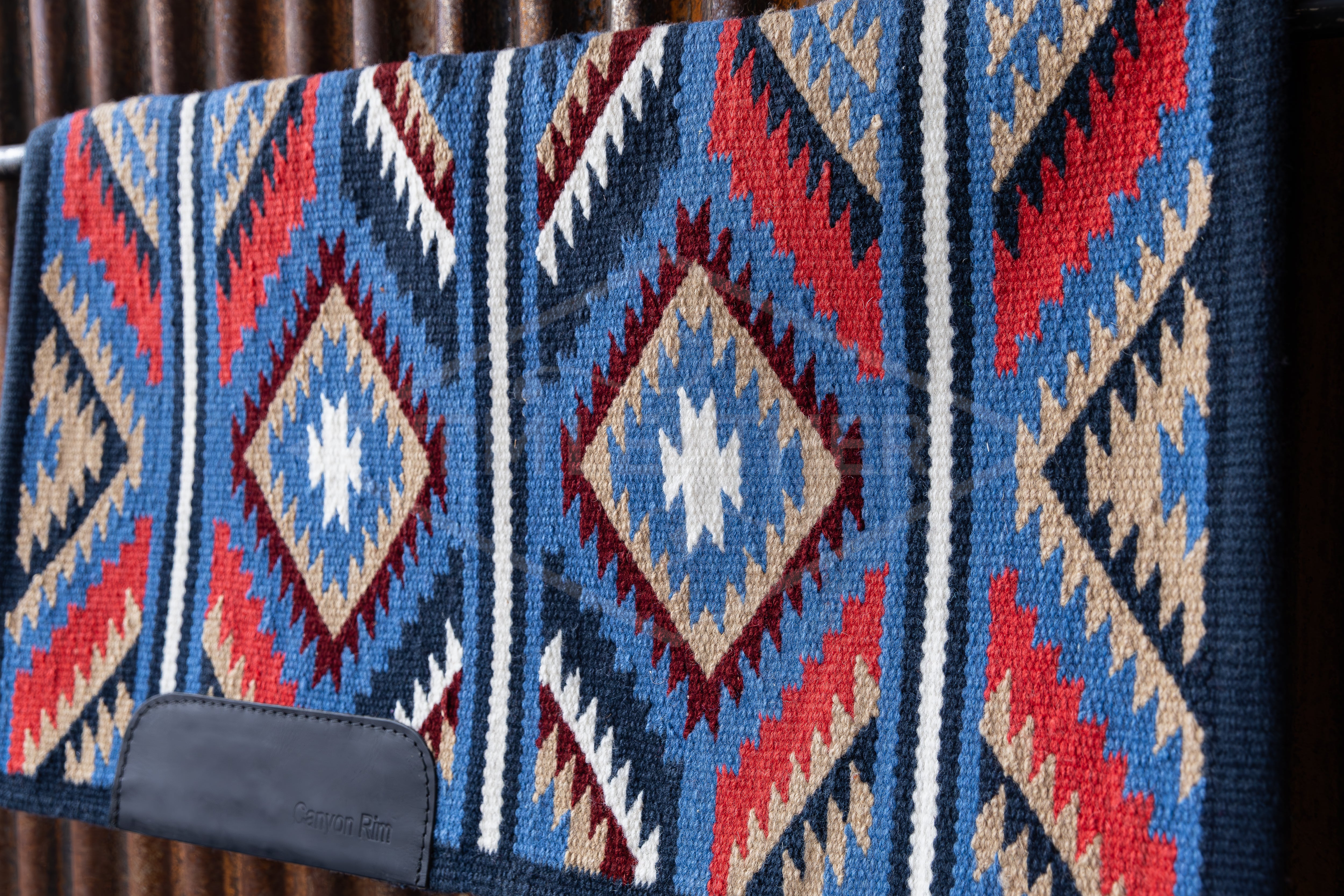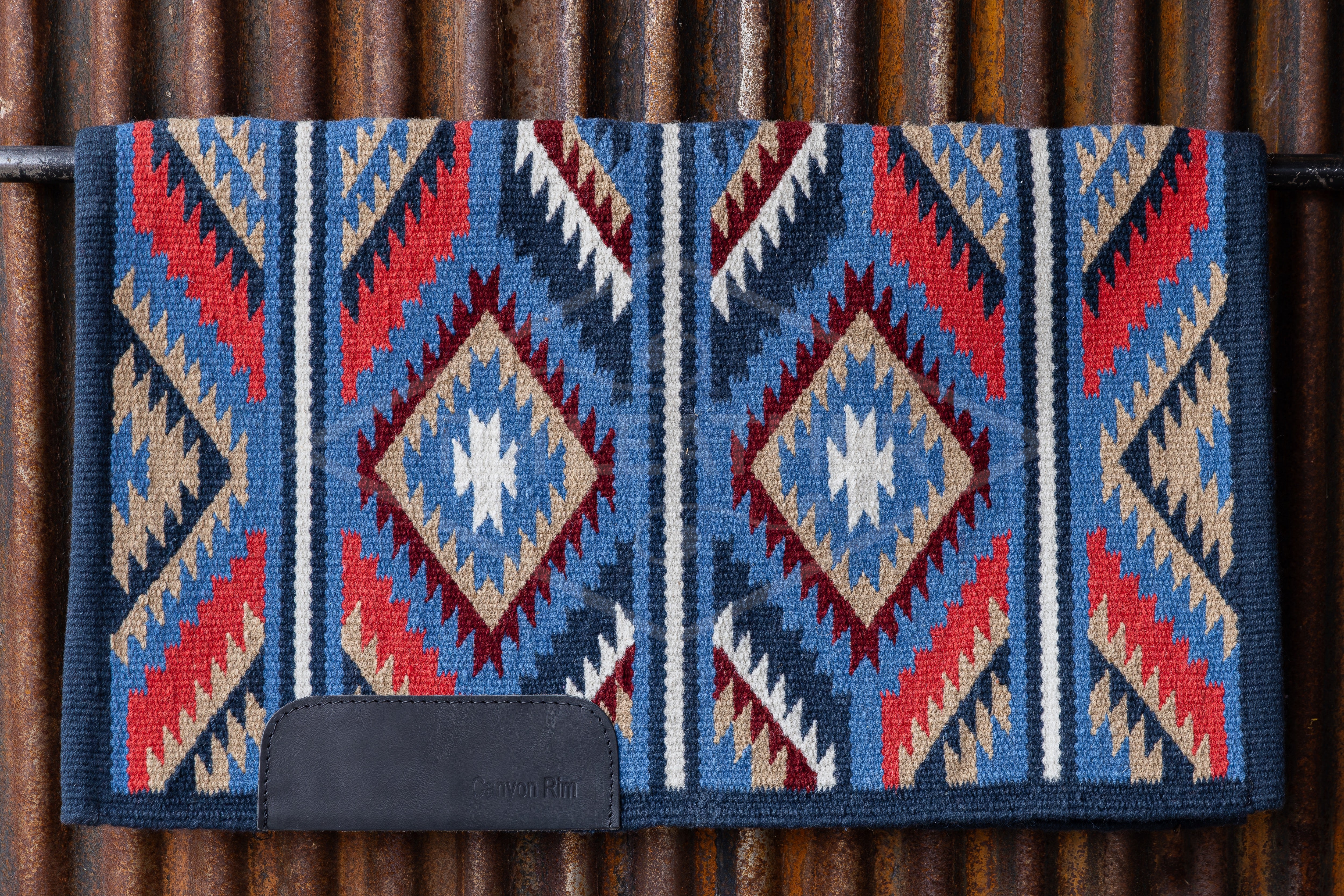 This pad features a Navy Blue base with a combination of Light Blue, Red, Coral, Tan, and White.