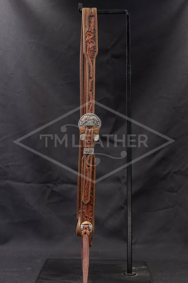 Black, Walnut, and Natural Tri-Toned Floral Carved Slit Ear Headstall