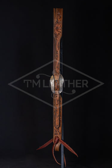 Features Silver Silverton Oblong Buckle with Floral and Copper Scrolled Overlay