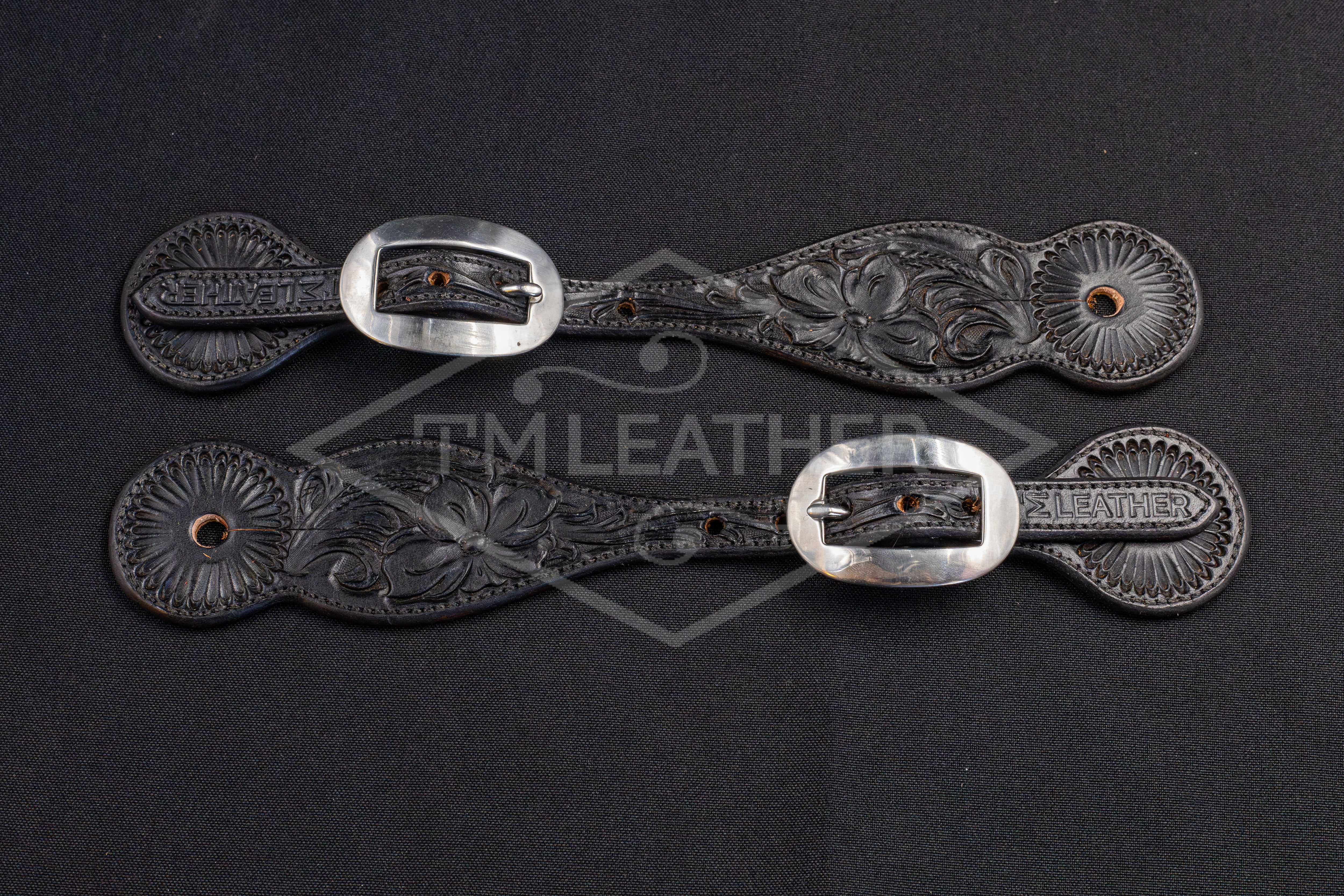 Black Small Floral Spur Straps w/ Plain Buckles