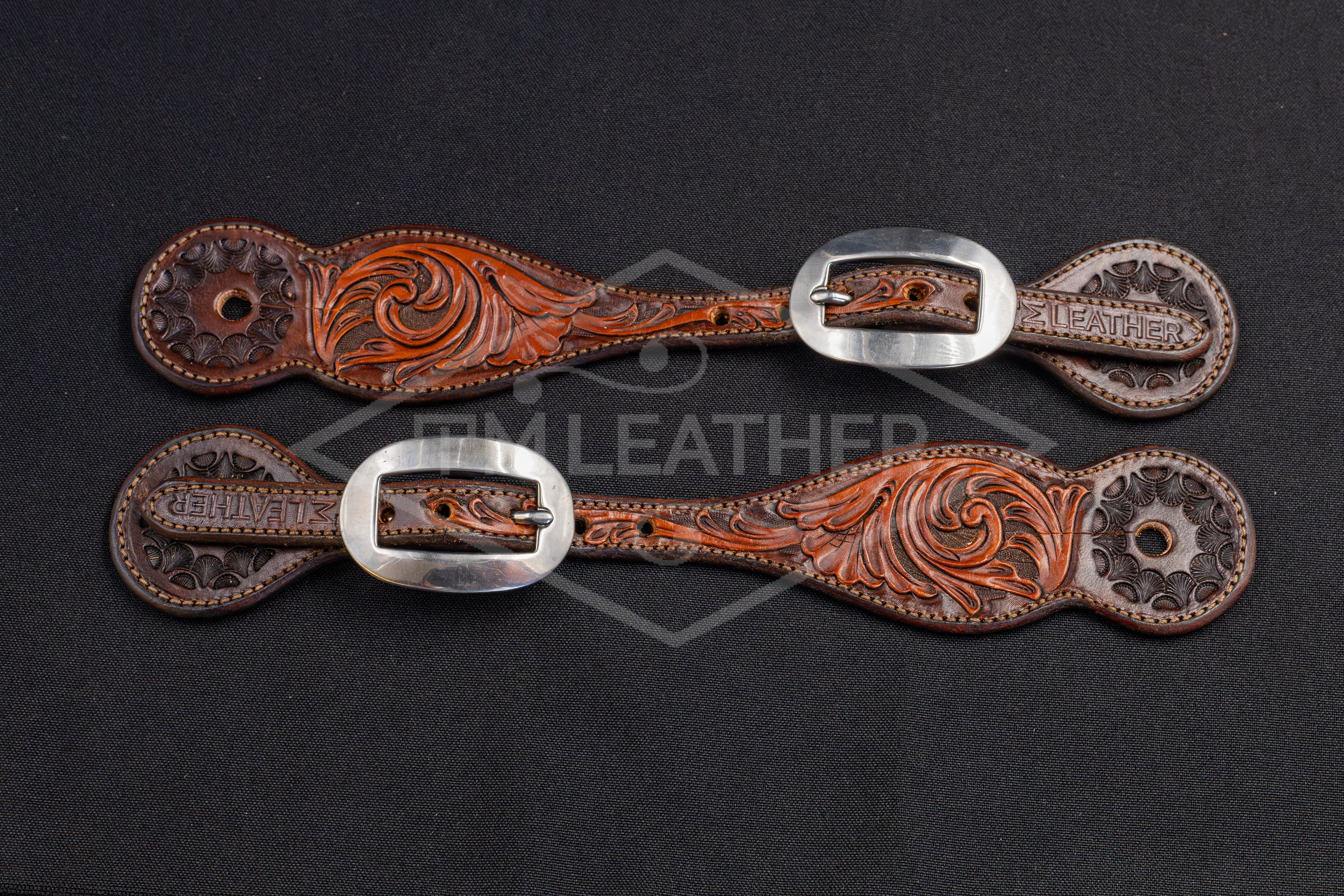 Mahogany & Natural Small Floral Spur Straps w/ Plain Buckles