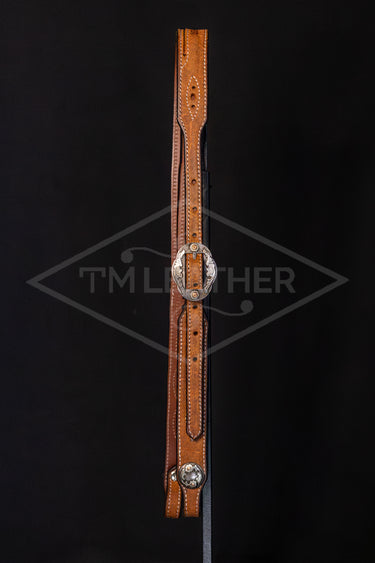 Working Slit Ear Natural Roughout w/ Gunslinger Stitching & Oval Silver/Copper Buckle & Matching Conchos