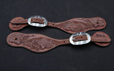 Brown Floral Spur Straps w/ Plain Buckles